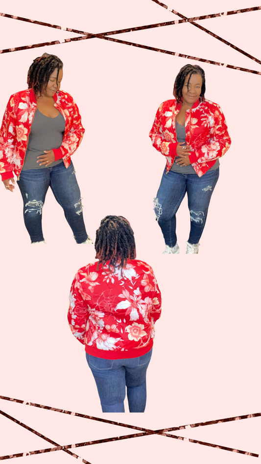 Midsize and Curvy size Floral Bomber Jacket
